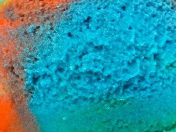 Just like the milk in the bottom of a Fruit Loops bowl, this tasty ice cream has a sweet Fruit Loops taste and a wacky blue color.